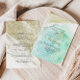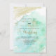 Este moderno convite de casamento para a caligrafia verde-ouro é perfeito para um casamento rústico. O design simples e elegante apresenta a tipografia de scripts clássicos e ricos em um fundo dourado e verde. Salve o papel, incluindo mais detalhes na parte traseira do convite em vez de em uma placa de gabinete separada.