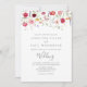 Este simples convite de casamento multicolorido de flor silvestre e de trás é perfeito para um casamento rústico. O design apresenta uma variedade multicolorido de flores silvestres cor-de-rosa, pinceladas, roxas, amarelas, brancas, violetas, vermelhas e burgundy. Salve o papel, incluindo mais detalhes na parte traseira do convite em vez de em uma placa de gabinete separada.