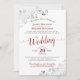 Tempos desesperados exigem medidas desesperadas! Devido à atual emergência de saúde pública, casais estão encontrando formas criativas de celebrar seus casamentos. Este belo convite convidará seus convidados a comparecer virtualmente a um livestream do seu casamento. Ele apresenta um design simples, mas elegante, com caligrafia de escrita vermelha sobre fundo branco e filigre de folha de folhas de cinza prateada friamente nos cantos. Porque o amor persiste!