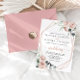 Este clássico e geométrico convite de casamento floral cor-de-rosa é perfeito para um casamento rústico. O design apresenta rosas poeirentos elegantes e cor d'água e folhagem verde, perfeitamente reunidos em belos buquês, enfeitando uma encantadora estrutura geométrica. Salve o papel, incluindo mais detalhes na parte traseira do convite em vez de em uma placa de gabinete separada.