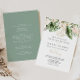 Este convite de casamento floral de folhagem tropical dourada, é perfeito para um casamento russo. O design apresenta ouro de aquarela pintada à mão e folhagem verde tropical com flores escamoteadas elegantes. Salve o papel, incluindo mais detalhes na parte traseira do convite em vez de em uma placa de gabinete separada.