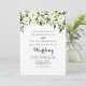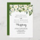 Este convite para casamento floral branco e verde no outono é perfeito para um casamento rústico. O design apresenta elegantes pedras brancas de aquarela com folhagem verde. Salve o papel, incluindo mais detalhes na parte traseira do convite em vez de em uma placa de gabinete separada.