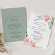 Este elegante convite para casamento floral, cor-de-rosa, é perfeito para um casamento simples. A design apresenta rosas rosas desenhadas à mão e peônias com folhas verdes e cinzas, inspirando beleza natural. Salve o papel, incluindo mais detalhes na parte traseira do convite em vez de em uma placa de gabinete separada.