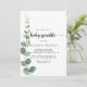 Este convite para o bebê eucalipto de delícia verde é perfeito para um chá de fraldas simples. A design apresenta galhos e folhas botânicas elegantes e desenhadas a aquarela e desenhadas à mão.