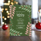 Um convite que pode ser usado para festas de férias ou casa aberta. É na moda suficiente para usar em eventos corporativos ou festas de férias. O desenho moderno e abstrato inclui ramos de eucalipto e bagas e sans serif para a parte principal do texto. A saudação está em uma escrita moderna rustica. O dorso inclui um padrão de eucalipto em verdes e coral pastel rosa.