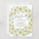 Bonito convite para brunch de chá de fraldas, com uma coroa de flores margarida com verde e coordenação para um toque especial extra.
