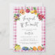 Celebrar a noiva com este novo chá de panela fora do mercado, com uma design de aquarela esbranquiçada com frutas coloridas e gingham rosa lúdico. Inspirado no charmoso mercado de fazendeiros, este convite moderno combina perfeitamente o encanto rústico com o talento contemporâneo. É a escolha ideal para um cheio alegre e único de chá de panela de diversão e amor frescos!