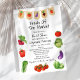 Fresco do mercado Veggies Banner Mercado Chá de panela de fazendeiros - Um chá de panela bonito e divertido para um chá de panela temático Mercado de fazendeiros ou Ela está fresca do mercado de bração. Com ilustrações em aquarelas de vegetais frescos, incluindo tomate, alface, repolho, pimentos e rabanetes vermelhos e verdes. Com um belo cartaz de vegetariano. Escrito em fontes e script manuscritos. Edite este modelo de chá de panela com seus próprios detalhes de evento. Também disponível como download digital instantâneo, perfeito para envio via texto, email ou mídia social.