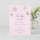 Modelo chá moderno, elegante e chique para bebê, com um fundo cor-de-rosa texturizado, a palavra BABY e flocos de neve desenhados à mão cobertos por rochas (não rochas reais, este é um efeito digital), tipografia moderna. Uma design chic, eterno para uma futura mamãe que comemora seu chá de fraldas nos meses de inverno, novembro, dezembro ou janeiro ou mesmo além, enquanto houver neve!