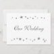 Linda pintura de uma fronteira de estrelas de prata vivas em vários tamanhos, formando uma adorável e ondulante fronteira, impressa em convites para casamento. Personalize facilmente os detalhes da fonte prateada nos formulários do modelo. Obrigado por comprar CherylsArt no Zazzle.