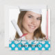 Fronteira de bolinhas aqua com design de folha de diamante para convite de festa de formatura. Personalize com sua foto de formando.