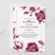 Burgundy floral Chinoiserie e convite para Baptism. Este convite é adorado com um embelezamento floral inspirado na porcelana chinesa. Lindas flores de pénia renderizadas no estilo da pintura tradicional de tinta, em cascata com flidez graciosa e enfeitando os cantos enquanto uma tripla borda enquadra seu texto. Uma paleta de burgundy rica e rosa é pontuada por realces brancos nítidos que captam a luz. A letra "T" na palavra "BAPTISM" é substituída por uma cruz burgundy. O fundo apresenta um padrão floral.
