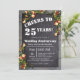 Convite de celebração de aniversário elegante com quadro de giz, borda floral e fundo de cerca de madeira. Personalize este convite para qualquer celebração - aniversário de casamento, aniversário, casamento ao ar livre e muito mais.