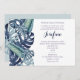 Uma bela seleção de folhagem tropical monocromática azul com palmeiras e folhas de monstera. Fácil de personalizar com as informações da sua festa. Parte da nossa coleção 'Folhagem Tropical Azul'.