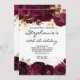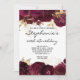 Crie seu próprio convite para comemoração de aniversário de marco de na moda. Folhas de ouro de metal falso decorativo e folhas românticas de vinho tinto burgundy escuro e romântico, com gráficos florais de vindima como bordas. Você pode personalizar os estilos de fontes modernos, cores e tamanho, conforme necessário. Altere a cor de fundo conforme necessário. As folhas de luxo são criadas com gráficos digitais.