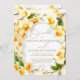 Crie seu convite de casamento de sonho com nosso design! Apresentando uma coroa elegante de delicadas flores amarelas com folhas verdes e peludas, este convite é perfeitamente personalizável para corresponder ao seu dia especial. Personalize todos os detalhes com facilidade. Disponível como download digital instantâneo para sua conveniência. Perfeito por adicionar um toque pessoal à sua papelaria de casamento!