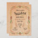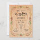 Esta suíte de convite para casamento de vintage-look boho apresenta folhas bonito desenhadas à mão e flores amarradas para formar uma coroa. O fundo de grãos de madeira proporciona um toque rústico de fundo.