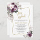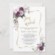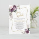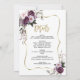 Design de encantador para uma Festa de Fim de Semana da Bachelorette. Apresenta flores púrpuras, cor-de-água rosa, folhas, modernas e falsas letras de ouro "HENS WEEKEND" e "DETAILS", falsos quadros de ouro. Use a ferramenta Personalizar para adicionar informações. Mais ideias na minha coleção de Festas de solteira.