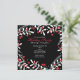 Convites de Festa Temática Preta com Bagas Vermelhas e Folhas Brancas. Personalize para qualquer evento.