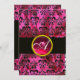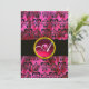 Convites FUCHSIA BLACK SILK DAMASK RUBY MONOGRAM, branco