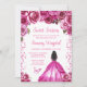 Este elegante e glamouroso e doce convite de 16 anos apresenta uma bela princesa com cabelo castanho e pele escura num vestido de bola rosa. O texto combina o script manuscrito e as fontes sans serif modernas para um aspecto elegante e sofisticado. Os arranjos florais, borboleta e confete criam a mistura perfeita de rústico e chic. Gráficos por www.etsy.com/uk/shop/SunflowerDayLove
