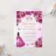 Convites Fuchsia Dourada Floral de Cor Floral Rosa Quinceañ