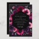 A dramatic arrangement of lush florals emerges from a dark, shadowy background. Vibrant fuchsia, deep plum, and rich magenta anemones create a striking and romantic display. This moody and elegant design blends gothic romance with modern botanical artistry, perfect for a sophisticated evening affair.