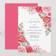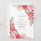 This artistic design features vibrant watercolor peonies and roses in shades of fuchsia and soft pink. Lush green leaves and delicate floral buds accent the composition, creating a romantic and airy aesthetic. Ideal for a sophisticated spring or summer event, the painterly style offers a timeless and elegant botanical look.