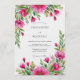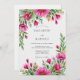 A vibrant display of fuchsia blooms and lush greenery cascades across this design, creating a lively and romantic atmosphere. The rich pink hues are complemented by fresh green leaves, evoking a sense of natural beauty. Perfect for a spring or summer occasion.