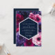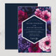 This dramatic floral design features a moody and romantic aesthetic perfect for an elegant evening affair. A lush arrangement of vibrant fuchsia, deep purple, and rich magenta roses and anemones blossoms against a dark navy background. The painterly quality of the botanicals creates a sophisticated and opulent atmosphere for your special day.
