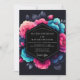 Embrace a dramatic and modern aesthetic with this stunning floral arrangement. Vivid fuchsia and electric cyan peonies pop against a deep, dark background, creating a luminous effect. The composition is rich with painterly details and moody foliage, perfect for a chic evening affair.