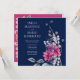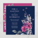 Lindos convites de casamento florais cor-de-rosa e azul-Marinho.