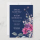 Lindos convites de casamento florais cor-de-rosa e azul-Marinho.