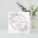 Este design apresenta peonias e folhagem num estilo de desenho de linha moderno e mínimo que lembra o formato floral. Os círculos Dourados destacam o texto correspondente que inclui sorifes clássicos e uma tipografia cursiva manuscrita. "Chá de panela" é mostrado no centro. A parte traseira do chá de panela tem os detalhes do registro. Há também muito espaço no verso para adicionar detalhes ou texto adicionais.