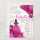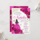 Quinceanera Floral Rosa e Dourada Fuchsia Convite de Aniversário