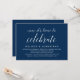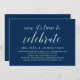 Lindo Anúncio de Fuga de Casamento Elegante Azul-Marinho, Cartão de Convite (Agora é hora de celebrar). Isto é perfeito para o seu jantar de recepção e festa de celebração pós-casamento. Adicione seus detalhes na fonte / letra correspondente.
