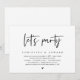 Convite de Fuga de Casamento temático Moderno em Letra Preta (vamos festejar). É perfeito para o seu jantar de recepção de fuga de casamento / festa de celebração pós-casamento. Adicione seus detalhes em fonte / letra preta correspondente.