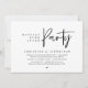 Cartão de convite de casamento com tema de escrita minimalista moderna (festa para sempre feliz). É perfeito para o seu reception de casamento / festa de celebração pós-casamento. Adicione seus detalhes na fonte / letra preta correspondente.