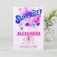 A playful mix of bold pink, blue and orange pops against a pristine white background, while playful, modern typography makes it easy to personalize. Flip it over to find a hot pink reverse for an extra sweet touch. Perfect for your child’s surprise party, this invitation sets the stage for a day filled with fun, wonder, and magical memories.