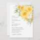 Um convite de casamento de rosa floral amarelo romântico com rosas em aquarela suave e folhagens delicadas dispostas em uma composição elegante de jardim. A paleta alegre de amarelo traz calor e brilho, criando um design de convite alegre perfeito para casamentos florais românticos.