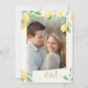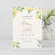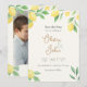 Cartão de Salvar Data de Casamento fresco e romântico com limões aquarela e folhagem verde emoldurando os detalhes do seu casamento em um fundo marfim quente. A frente destaca seus nomes e data de casamento em tipografia elegante, perfeito para celebrações cítricas, de jardim, italianas ou de verão. No verso, uma borda de limão e área de iniciais com pinceladas à mão emolduram sua foto de noivado ou de casal, dando aos convidados uma prévia personalizada do seu dia.