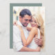 Melhore o seu convite para o casamento vellum ou acrílico ou salve as sobreposições de data com este cartão verde sábio com a sua foto mostrada na frente. No verso, insira o endereço do seu site de casamento para criar um código QR para seus convidados digitalizarem para RSVP on-line e obter detalhes adicionais de casamento, como acomodações.