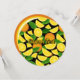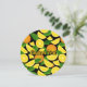 Frente: Fatias e folhas laranja. Um padrão perfeito. Cor de fundo personalizada. Custom Text. Verso: Fatia redonda de fundo laranja. Campos de texto personalizados para informações sobre eventos.