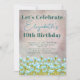 Este convite de aniversário de fundo rústico de flores aquáticas azuis está pronto para você personalizar. É para uma adolescente. Teal bravo e elegante inscrição azul num fundo rústico roxo, rosa e vermelho rústico.