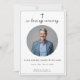 Aceite a memória amada de seu ente querido com nosso solene "Funeral Católico no Convite Fotográfico Adorável". Criado por famílias católicas devotas, esta homenagem tem uma cruz simbólica, incorporando fé e memória. A elegante inscrição "In Loving Memory" na caligrafia enfeita a frente, ao lado de uma amada foto oval, nome, detalhes de expectativa de vida, e uma mensagem sincera, prestando tributo à jornada de suas vidas. Ao contrário, encontre espaço suficiente para detalhes essenciais como nome do local, endereço, data e hora. Além disso, há espaço para mensagens personalizadas e informações de RSVP, garantindo um toque atencioso e personalizado para honrar a memória de seu amado durante esta ocasião solene. Este convite é um testemunho da fé, da memória, e da homenagem à vida vivida. Personalizável e concebido para comemorar o seu ente querido de uma forma que reflita o seu espírito e os seus sentimentos mais profundos.