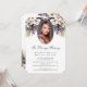 Serviço Elegante de fotografia floral roxa e branca/celebração da vida/funeral/em carinhoso convite de memória com uma foto adornada com orquídeas roxas e brancas e verde.