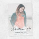 Um convite para o funeral de fotos moderno e minimalista para comemorar a vida do seu ente querido num estilo minimalista e simples de design, com uma letra manuscrita e um fundo de cinza de pomba suave. O convite pode ser facilmente personalizado com sua própria foto e texto para criar um tributo especial para o funeral, memorial ou celebração da vida de seu ente querido. A imagem mostrada é apenas para fins de ilustração para ser substituída pela sua própria foto. A imagem mostra uma jovem de cabelo comprido marrom e comprido vestindo uma jaqueta de couro, jeans laranja e topo branco. #funeral #convite