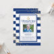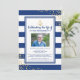 Zarpem numa viagem sincera de recordação. O nosso convite de celebração de vida náutica combina o fundo calmante de listras azuis e brancas com um toque de brilho dourado, tudo unido por um símbolo de âncora de marinheiro que representa força e estabilidade. Cada convite vem com uma moldura para uma foto querida e um modelo de serviço fúnebre fácil de alterar, garantindo que a memória do seu ente querido seja homenageada como desejar. Navegue pelo luto com graça e abrace o apoio de amigos e familiares com este convite lindamente desenhado.