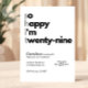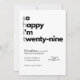 This funny minimalist birthday invitation features the playful phrase “so happy i’m twenty-nine”—perfect for celebrating (or coping with) the last year of your twenties.