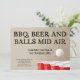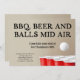 "BBQ, Beer & Balls Mid Air." A funny beer pong BBQ invitation for the bold and the buzzed. Perfect for a 21st or 30th (or any other year) birthday or bachelor party.